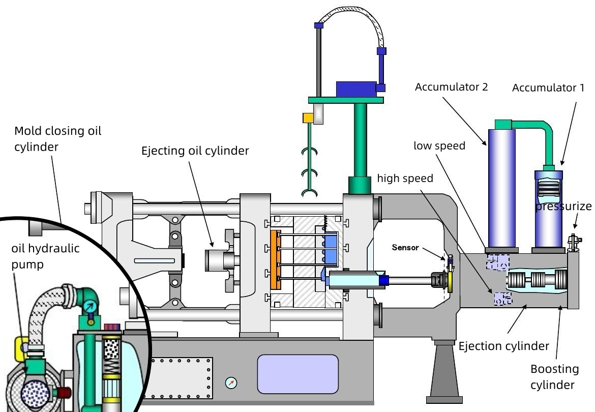La bomba de aceite en una máquina de fundición a presión es un componente crítico responsable de hacer circular el fluido hidráulico por todo el sistema. Esta circulación es esencial para operar la unidad de sujeción, el sistema de inyección y otros componentes hidráulicos. Los sonidos anormales de la bomba de aceite a menudo indican problemas subyacentes que podrían provocar tiempos de inactividad de la máquina o piezas fundidas defectuosas. Para abordar estas inquietudes, es esencial comprender los diferentes tipos de máquinas de fundición a presión y cómo funcionan sus bombas de aceite.